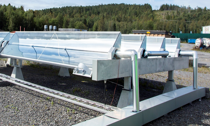 小型槽式太阳能集热器模块 4个T160集热器组成一个模块,在项目中以一个模块为基本单位。实物如下图所…